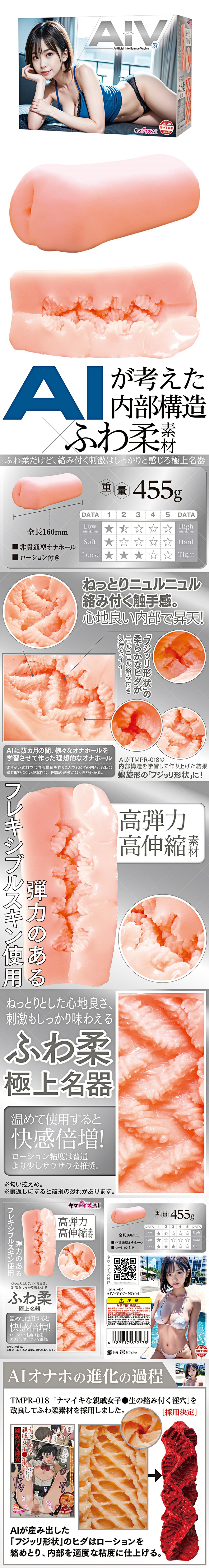 【国内自社工場製】【タマトイズAIAIに数カ月の間、様々なオナホールを学習させて作った理想的なオナホール 「AIが考えた内部構造」+ふわ柔素材が奏でる極上の心地よさ。 非貫通型オナホール 弾力のあるフレキシブルスキン使用 高弾力・高伸縮素材 ローション付き 全長160mm 重量455g