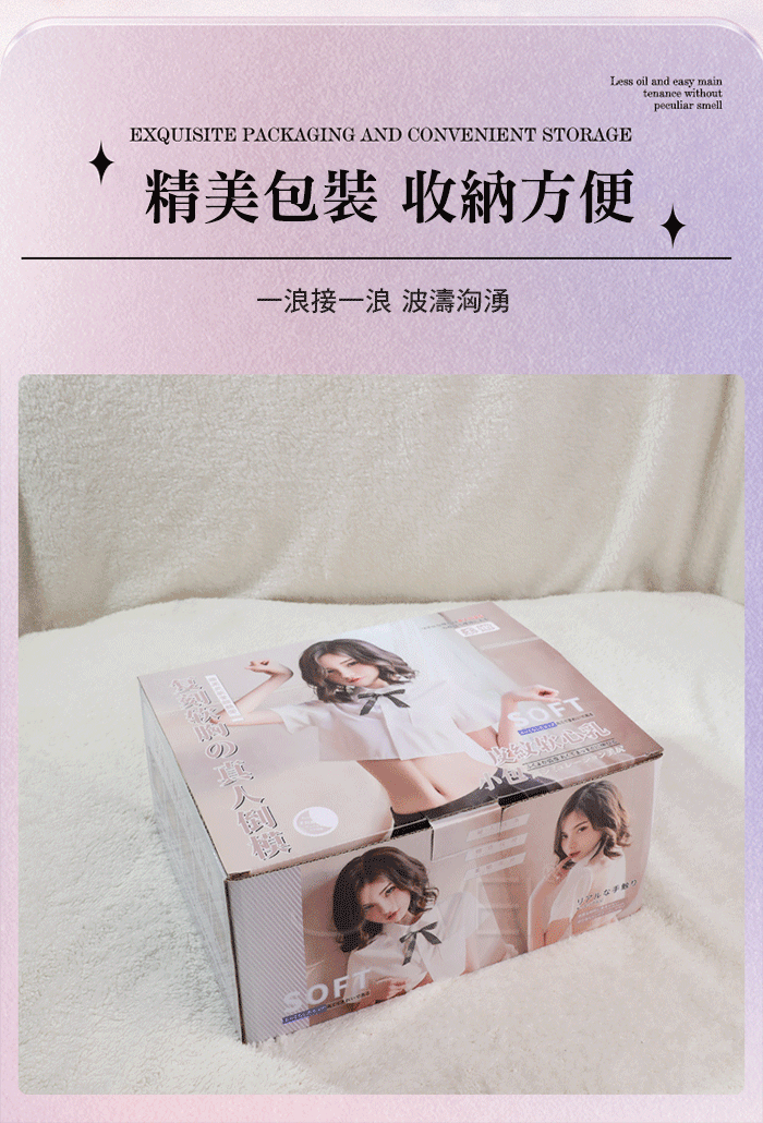 真人G奶復刻,圓潤大奶真人乳暈,胸部皮紋,看得見的舒適體驗,細膩皮膚紋 理;玲瓏佳人,波濤洶湧,綿軟抖動,感受一浪接一浪的波推感;逼真私處,真 實通道還原,逼真造型復刻,入口圈環包裹,深處蠕動,仿真通道,三種玩法一 次擁有,激情三交,酥胸、後庭、私處,多樣體驗!