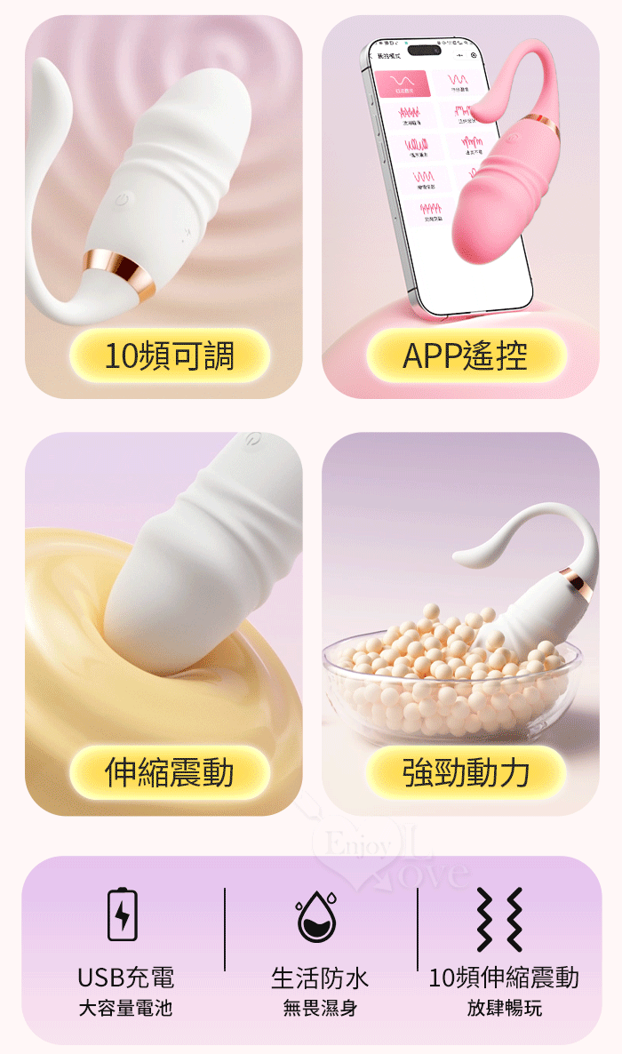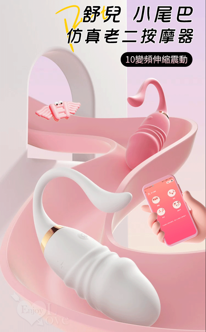 ROSELEX 勞樂斯 ‧ 舒兒 10X伸縮震動小尾巴仿真老二按摩器 - 手機APP遙控﹝具兩種操控模式﹞粉