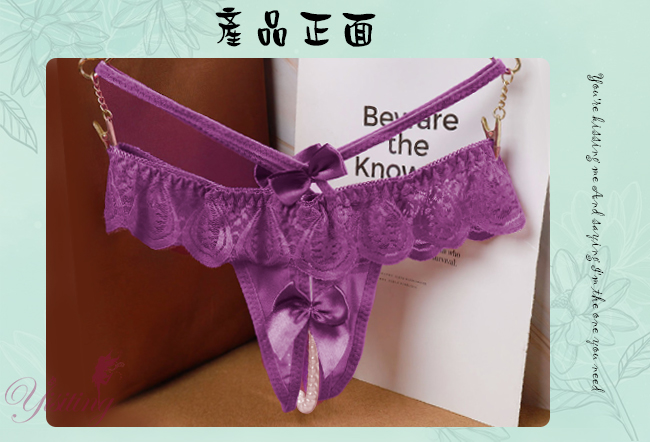浪漫情人!輕膚柔紗拼接蕾絲迷人珍珠開襠丁字褲﹝紫﹞