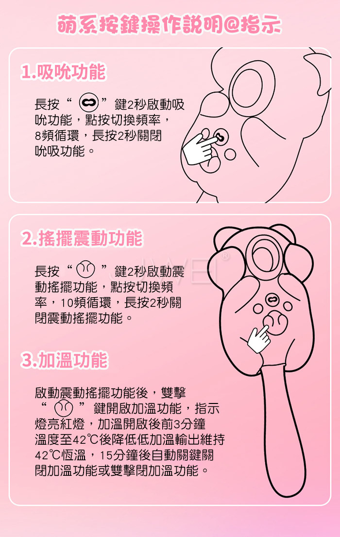 ►您現在的位置:首頁>萌系拍打.8頻秒朝吮吸+10頻尾部搖擺攪動加溫按摩器
