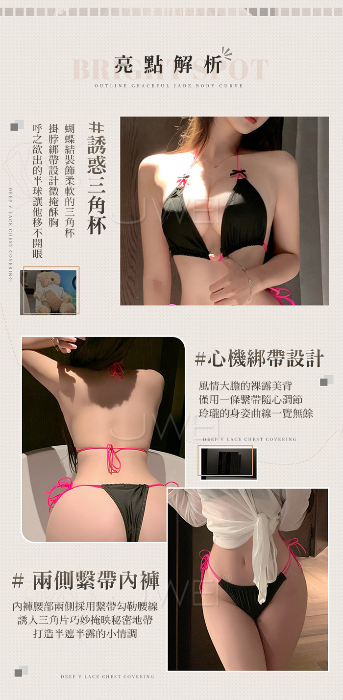 | 撞色誘惑.性感辣妹撞色三點式綁帶比基尼【胸罩+內褲】
