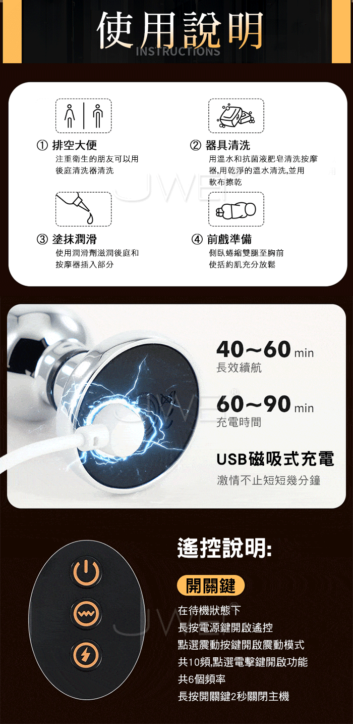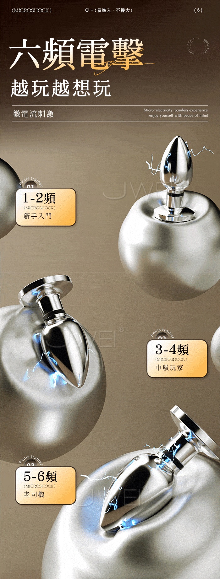 微電擊金屬後庭調教塞,微電不痛 安心玩 六頻電擊,越玩越想玩,微電流刺激,直擊深處敏感點 十頻強震,暢享後庭快感,前戲調情 漸入佳境 肆意暢玩! 產品規格 ■材質: 合金金屬 ■規格: 詳如圖片標示 ■功能: 6頻電擊、10頻強震、遙控