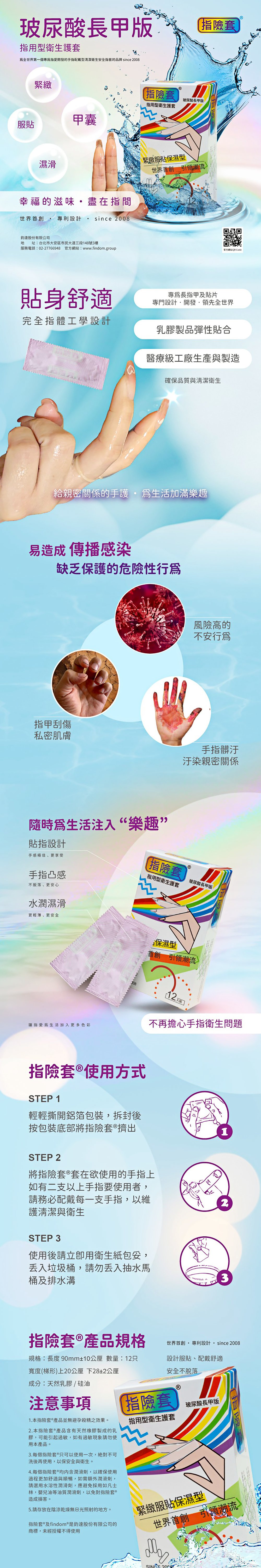 用途:男女情趣之用 材質:天然乳膠/矽油 顏色:透明 數量:12只 總重:約31g 尺寸:長度9±1cm、寬度(梯形)上2cm 下2.8±2cm、底部捲邊設計 外盒尺寸:7x2.8x12cm 包裝樣式:鋁膜安全密封包裝入 有效期限:5年 注意:請與潤滑液共用並保存在陰涼處,欲重複使用,用後請以清水沖洗即可。 ※情趣用品屬於個人衛生用品,經拆封使用,無法接受退換貨!※ ※每台電腦的解析度皆不同,可能有些微色差,顏色皆以實品為主!※