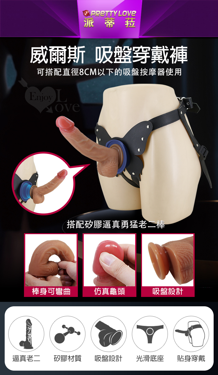►您現在的位置:首頁>PRETTY LOVE 派蒂菈 ‧ 威爾斯 Nells 矽膠逼真勇猛老二棒+強力吸附穿戴褲﹝可拆分通用﹞