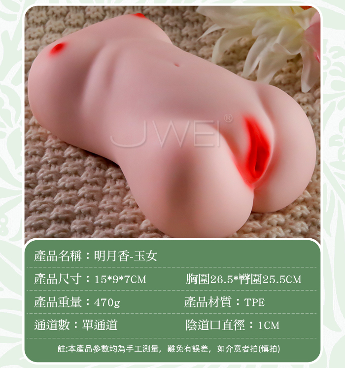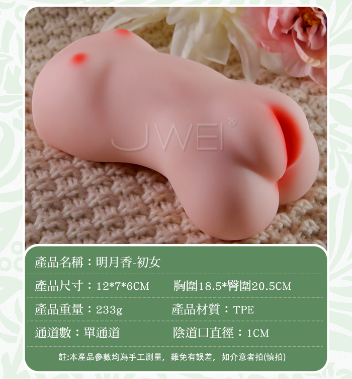 “享受二次元的絲滑愉悦”擬真模特兒“明月香姐妹” 作為半身名器的明月香有著特別之處: 1.飽滿的小饅頭私處 2.Q彈肉厚的杯體 3.桃花深處的大顆粒 每一次的觸動都是身心的滿足~~ 產品規格 ■尺寸:大小詳如圖片標示 ■材質:TPE ■重量:約470g