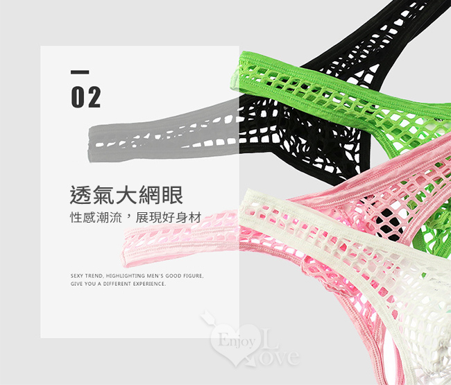 《 Enjoy Love 》性感半透大網孔男士丁字褲 - 黑﹝M﹞