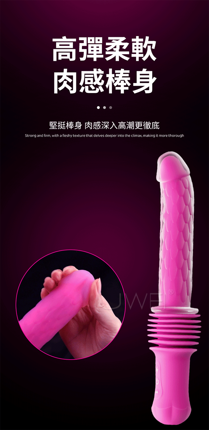 1.仿真頭部,龍鱗紋理 2.3頻伸縮,自動抽送 3.尺寸適中,不撐大私處 4.智能加溫,拒絕冰冷 5.雙層矽膠,放心安全 6.全身防水,玩法多樣 7.搭配吸盤,解放雙手 8.遠程遙控,玩法多樣 產品規格 ■尺寸:大小詳如圖片標示 ■材質:TPE+ABS ■功能:3頻伸縮、10頻震動、、無線遙控、吸盤底座、加溫