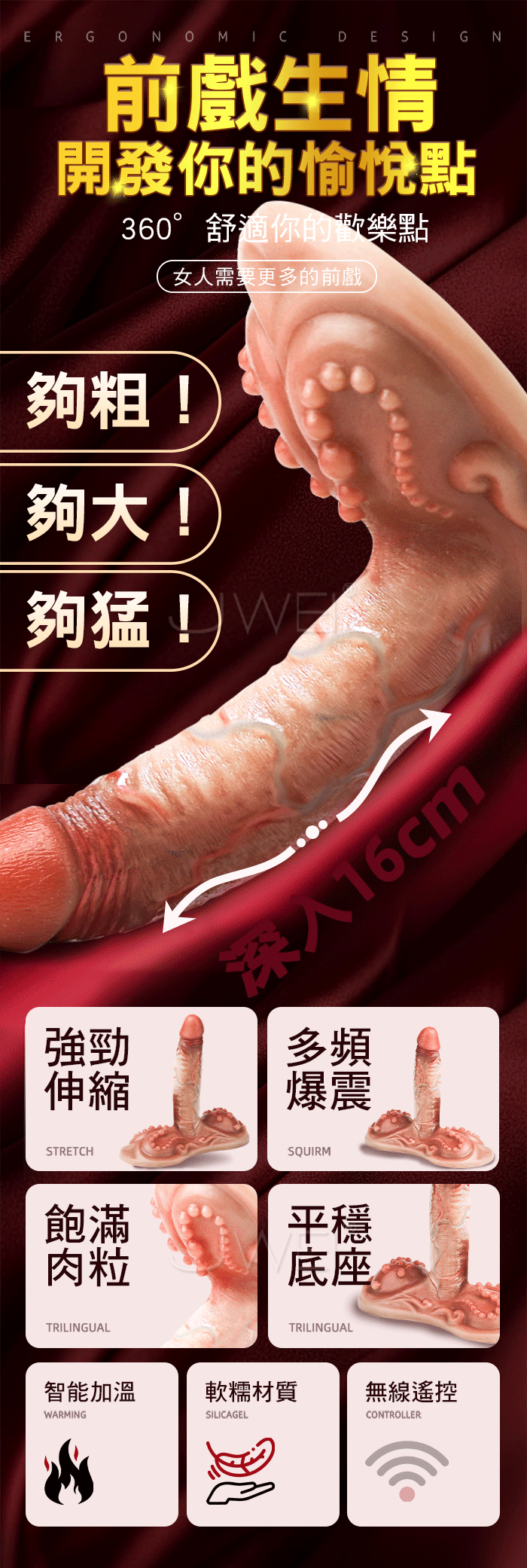 滑膛炮.6頻爆震+6頻伸縮 顆粒挑逗 平穩底座加溫遙控逼真肉色老二棒