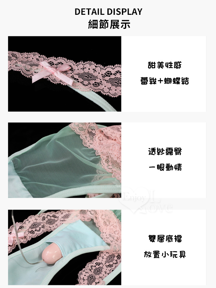 | 蕾絲交叉寬帶透膚翹臀剪裁|雙層底襠私密口袋跳蛋褲
