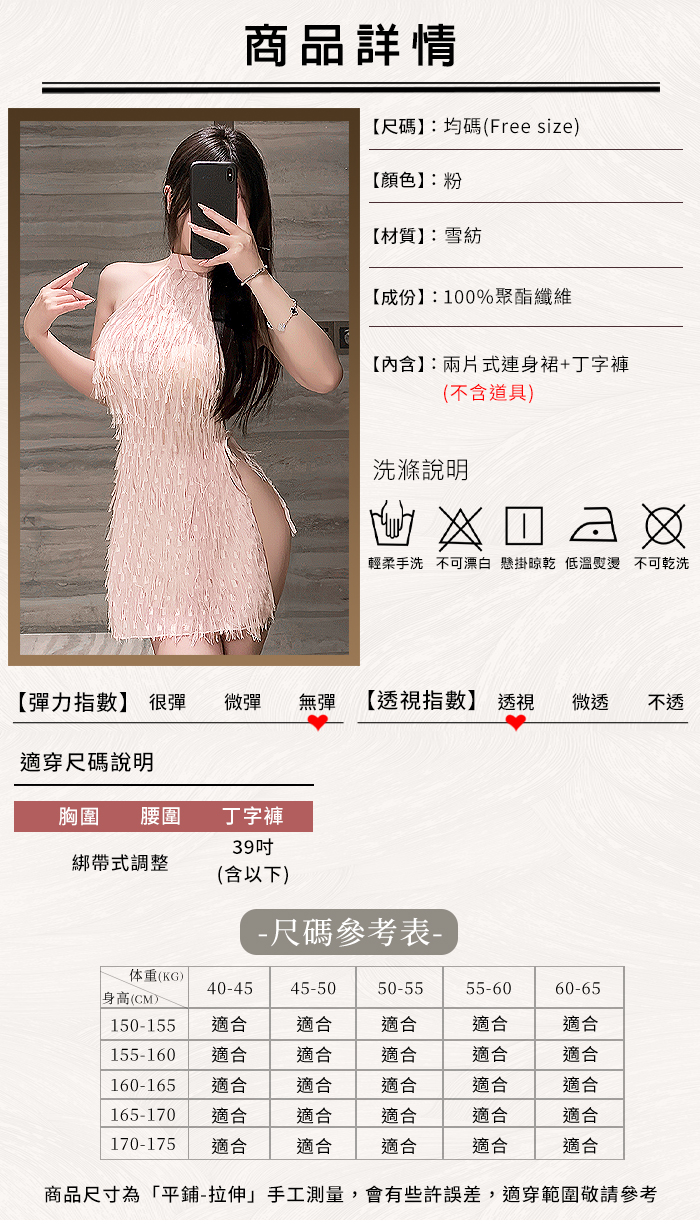 | 情趣夜店派對服!削肩綁脖耀眼流蘇裸背側開衩性感連身裙兩件組﹝粉﹞