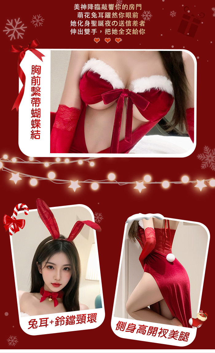 ►您現在的位置:首頁>聖誕魅力/新年狂歡派對!兔耳毛絨蝴蝶結中空禮服|側開高衩性感長裙六件式套裝