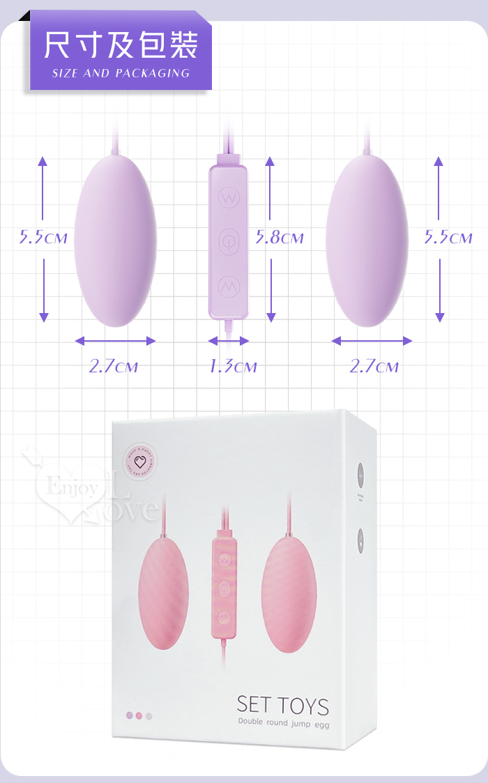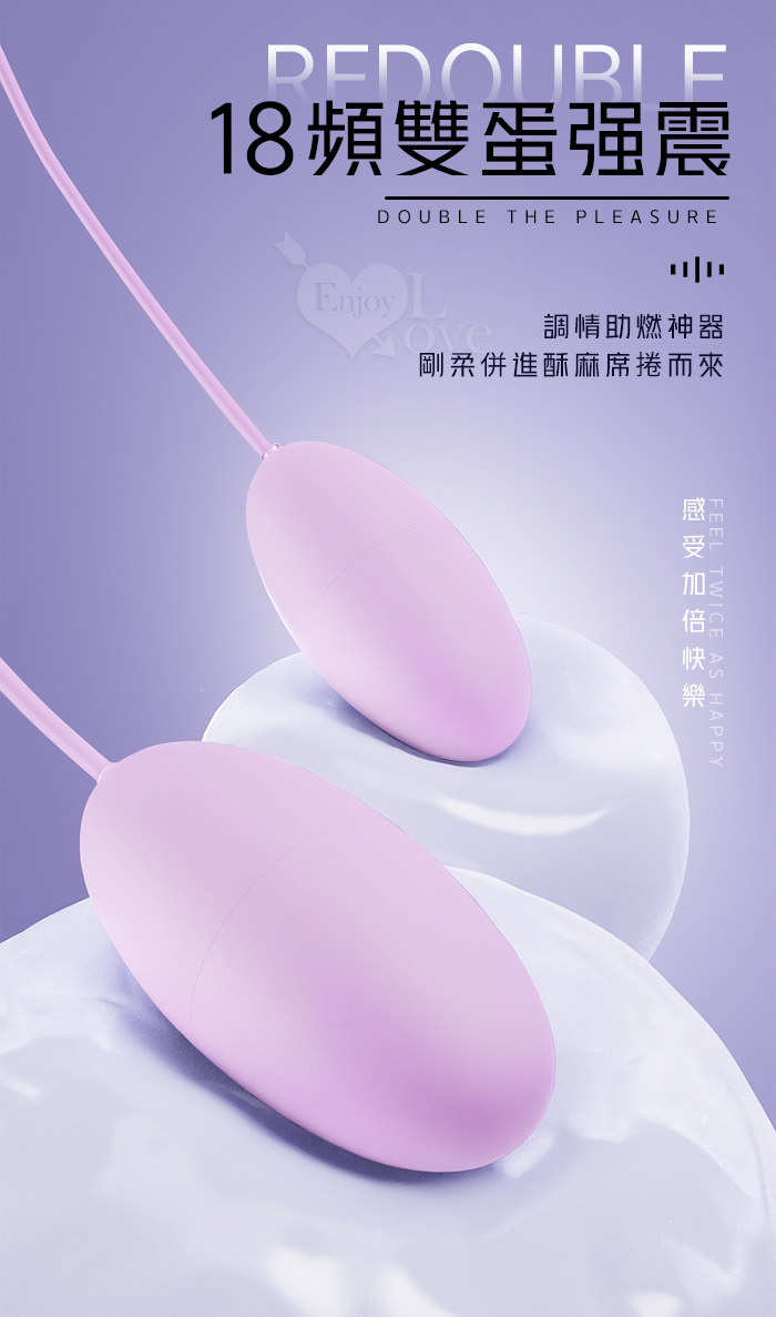 ROSELEX 勞樂斯 ‧ 雙圓跳蛋 18頻調控強震入體雙跳蛋﹝內外刺激+USB直插供電+雙邊可獨立控制﹞淺紫