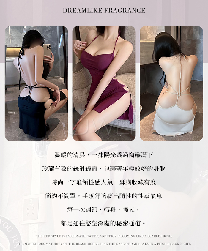 ►您現在的位置:首頁>綺夢暗香.優雅蕩領美背綴腰掛脖後繫帶睡裙【黑色】