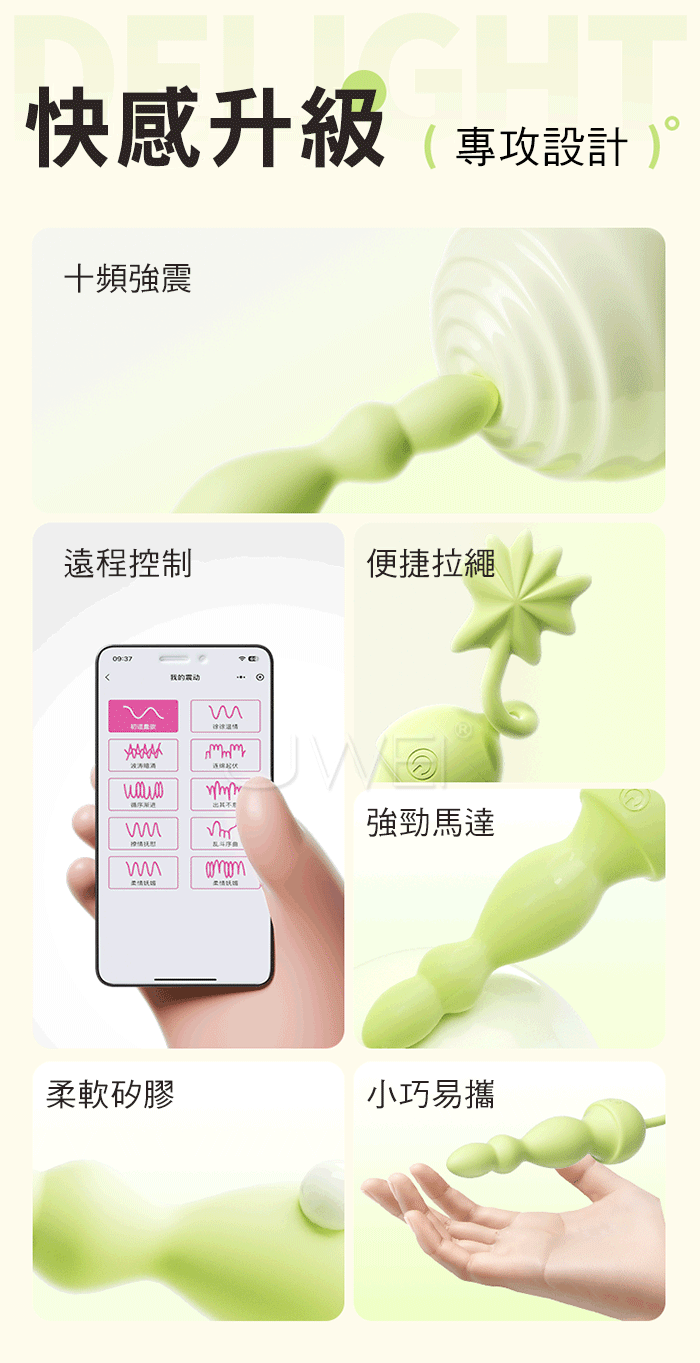 幸運葉 萌芽.10頻酥麻強震 軟糯絲滑 APP遠控拉繩後庭拉珠棒