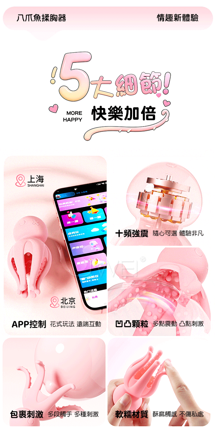 雙頭刺激,撩乳震陰,持續爽潮一刻不停 十頻震顫,強力馬達,高頻強勁深入衝擊,勢不可擋 凹凸顆粒撩撥,激情不單調,激爽更有感,如愛人一樣輕擁 產品規格 ■材質: 矽膠+皮革+金屬 ■規格: 詳如圖片標示 ■功能: 10頻震動,APP智控