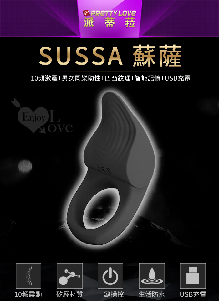 | 派蒂菈 ‧ SUSSA 蘇薩 震動鎖精刺激陰蒂套環﹝10頻激震+男女同樂助性+凹凸紋理+智能記憶+USB充電﹞