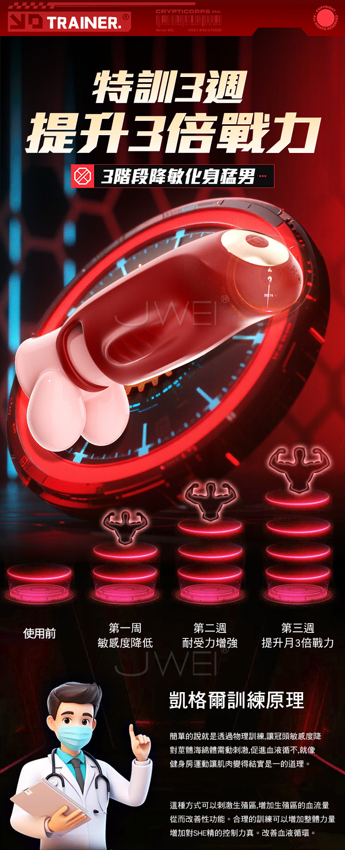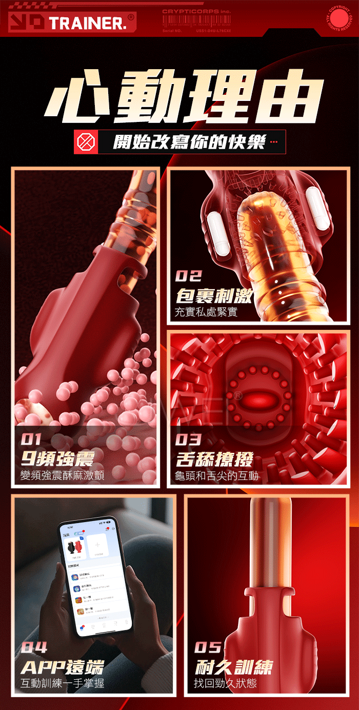 | 丁丁.10頻雙馬達強莖舌撩震顫 APP智能遠控自慰訓練器【紅色】