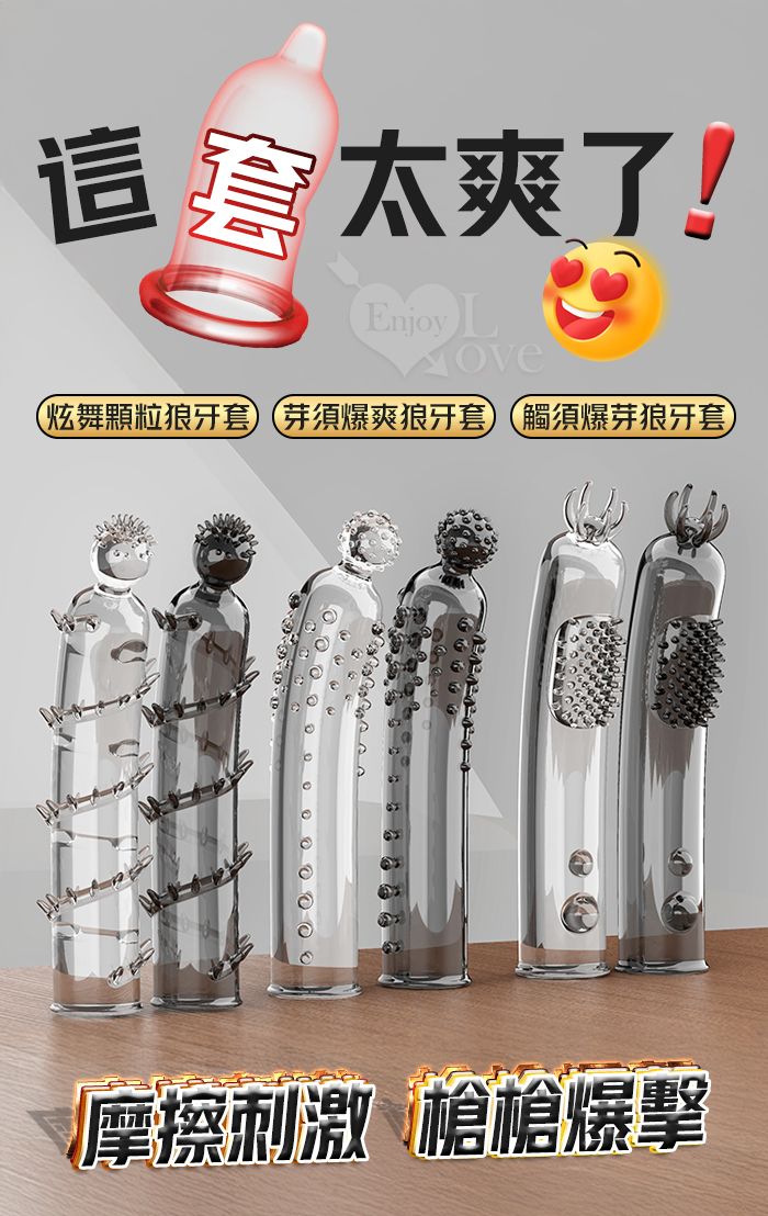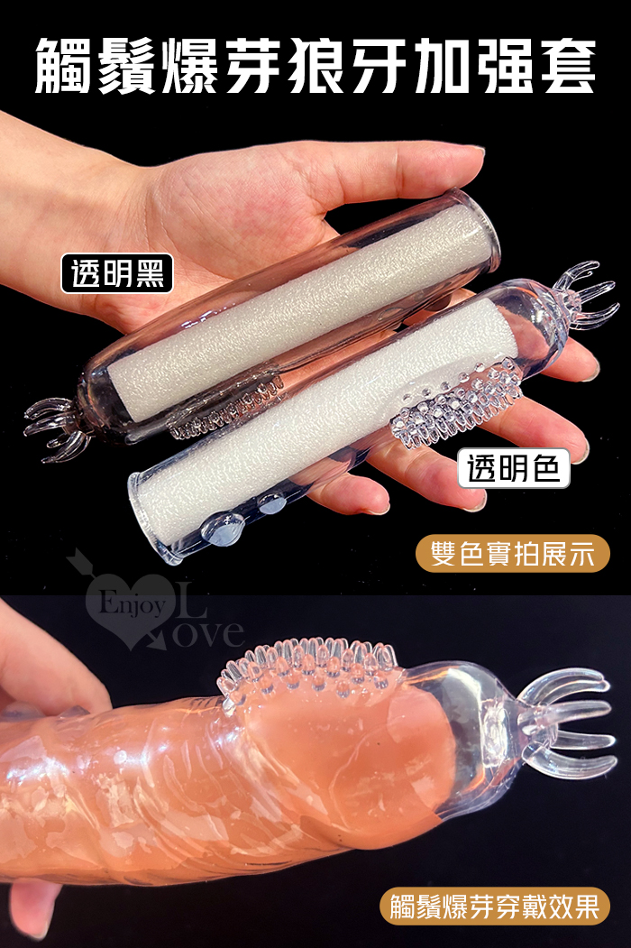 取悅 ‧ 觸鬚爆芽狼牙加強套-59個密集顆粒刺激G點~槍槍爆擊﹝透明色﹞