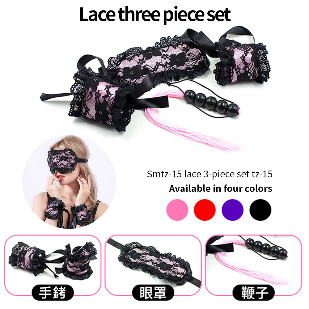| 滿2000元贈品 SM情趣調情組合黑色情慾蕾絲三件套(眼罩+手銬+鞭子)