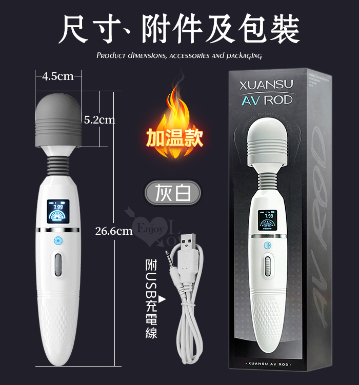 | ROSELEX 潮吹王AV棒 ‧ 女優を絕叫 液晶螢幕顯示9頻X8級速大頭強震按摩棒-灰白﹝智能加溫款﹞