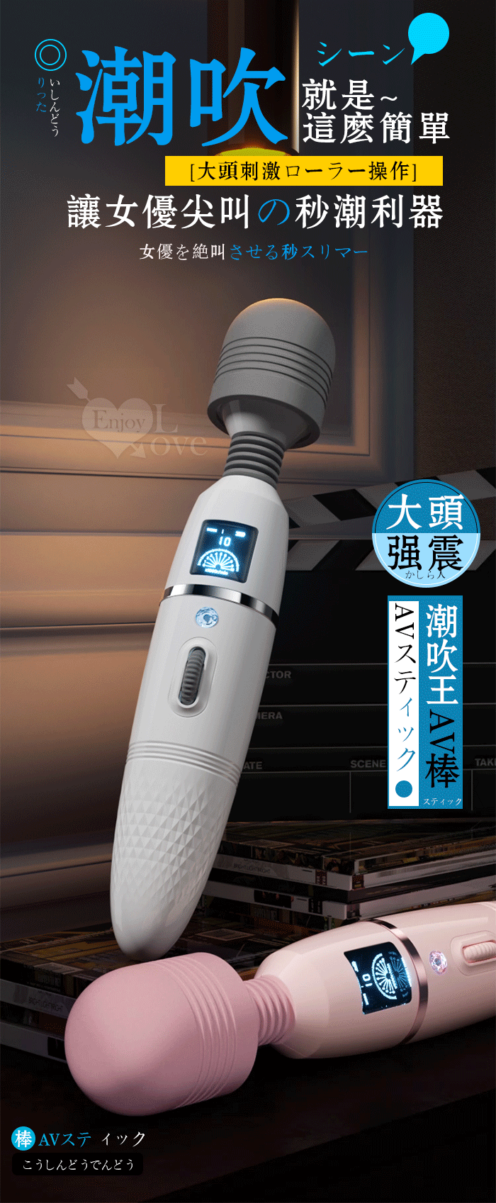 | ROSELEX 潮吹王AV棒 ‧ 女優を絕叫 液晶螢幕顯示9頻X8級速大頭強震按摩棒-粉紅﹝智能加溫款﹞