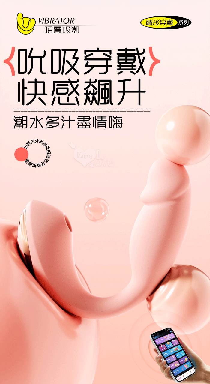 ROSELEX 頂震吸潮 ‧ 10頻內外刺激吮吸巨能震隱形穿戴老二按摩器 - 可手機APP遙控﹝具兩種操控模式﹞粉