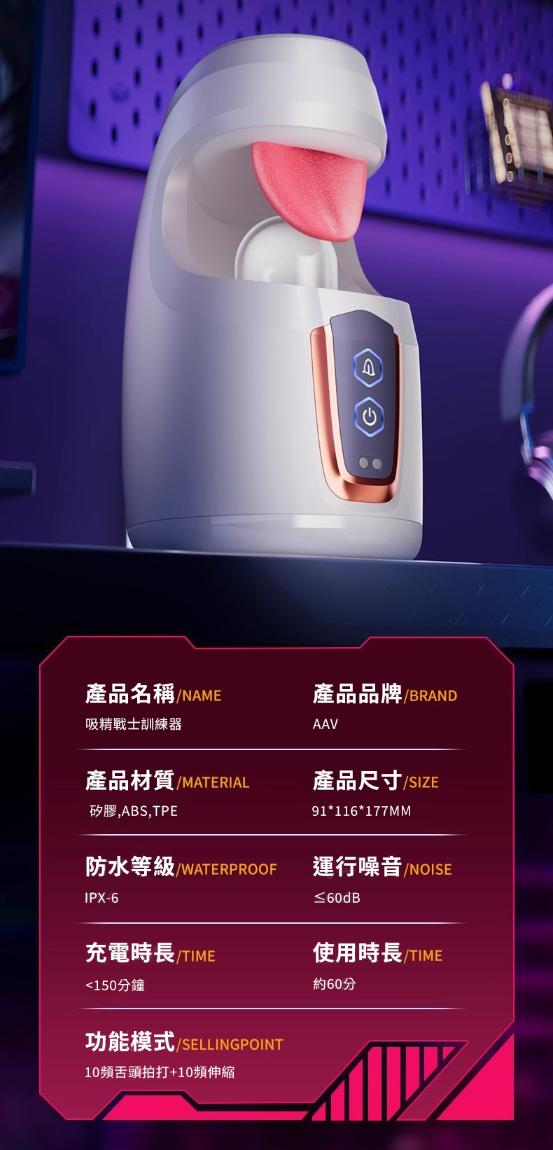 AAV 吸精戰士.舌舔拍打10頻震動+伸縮飛機杯 仿生舌舔暴力吸精器(白色)