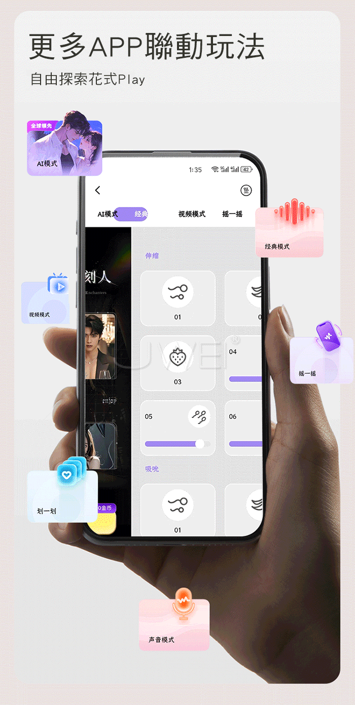 | 花間吻.6x6頻伸縮強震深吻吮吸 分離式加溫智能遠控按摩棒【基礎款】