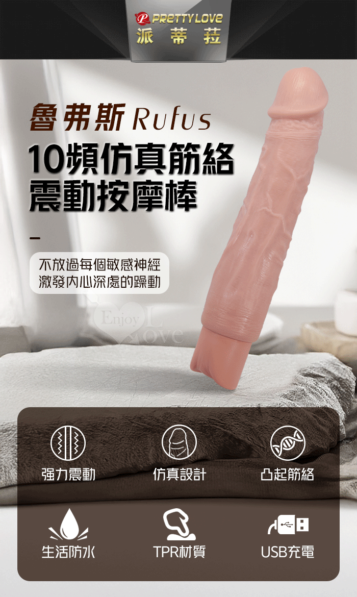 | 派蒂菈 ‧ Rufus 魯弗斯 10段變頻震動 膚色肌仿真筋絡大老二造型充電按摩棒 NO.3﹝9.3″ 23.8cm﹞