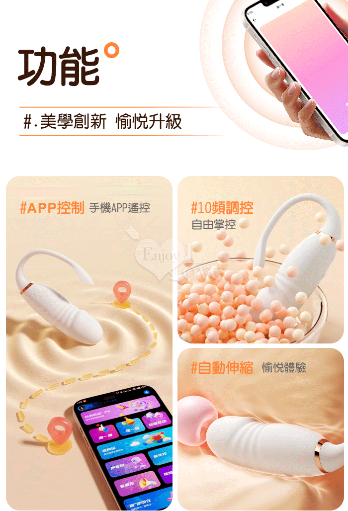 ROSELEX 慾芯 ‧ 10X伸縮震動小尾巴仿真老二按摩器 - 可手機APP遙控﹝具兩種操控模式﹞粉色