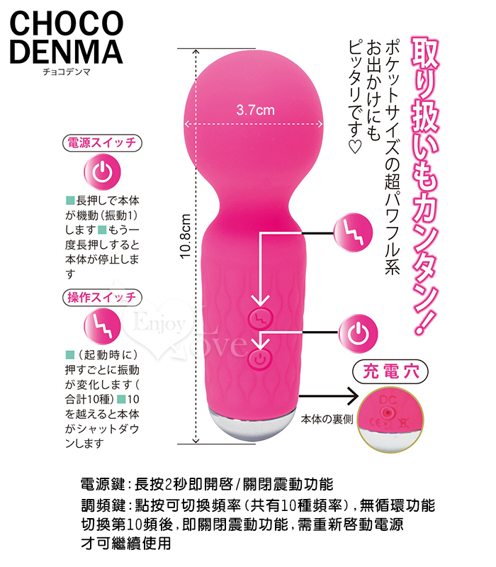 日本NPG.CHOCO DENMA 炸裂AV棒 3段震速x7頻震動 迷你按摩棒-紅