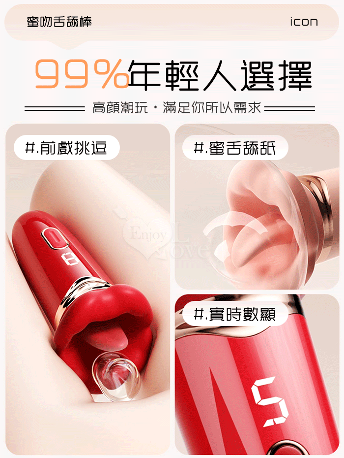 | ROSELEX 蜜吻舌舔!10X頻激震舌擺數碼顯示拍震按摩器﹝前戲調請‧挑逗自慰最佳聖品﹞紅