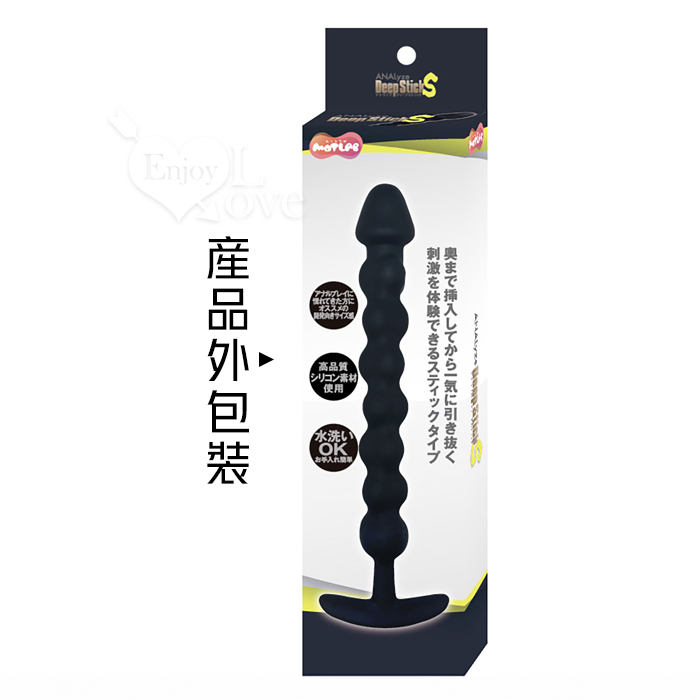 日文簡述: アナルの奥深くまで感じられるすたんだーど中級者向けアナルスティック。固まったアナルを徐々にほぐし、スムーズなプレイにつなげる為の準備運動に最適。ほぐした後は一気に引き抜いたりピストンすることで、リブ構造の連続快感を楽しめます。自在な可動域の挿入部分は、進路に合わせてクネクネ曲がるので身体を傷めません。高品質なソフトシリコン採用で、柔らかい肌触りとしっかりした存在感を両立。水洗い可能なので使用後も清潔に保てます。