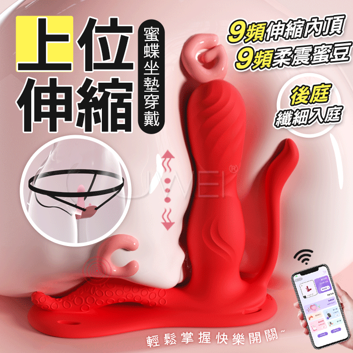 蜜蝶.9頻伸縮內頂+9頻柔震蜜豆 APP智能遠控 女上位坐墊穿戴跳蛋【紅色】