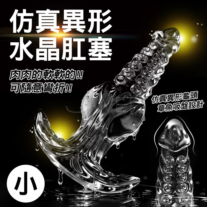 異形水晶.仿真異形龜頭章魚吸盤 透明水晶矽膠肛塞【小】