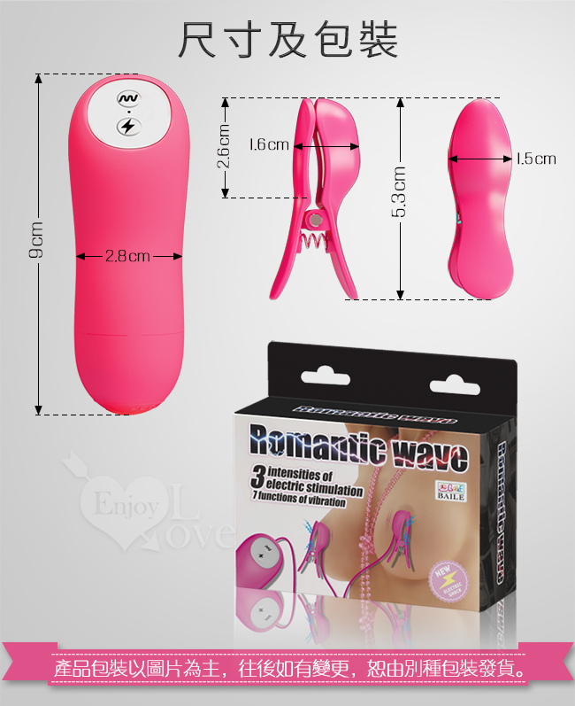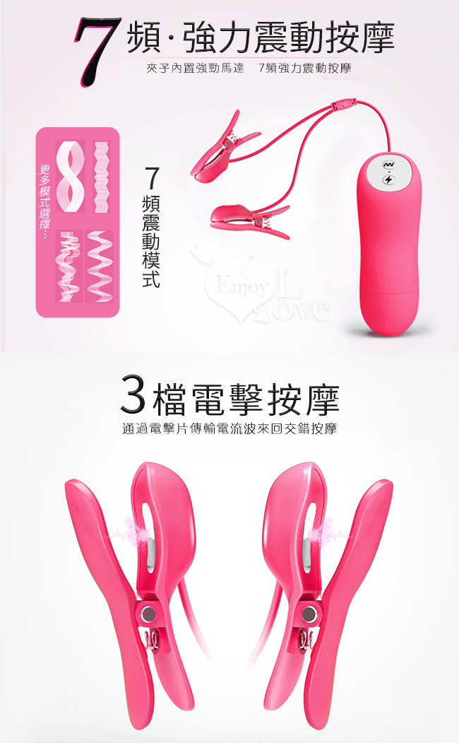 Romantic Wave 7頻震動+3檔電擊雙震動乳頭夾