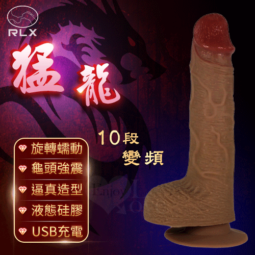 ★★RLX 猛龍 ‧ 10段變頻液態硅膠肉感逼真老二棒﹝旋轉蠕動+龜頭強震+USB充電﹞大