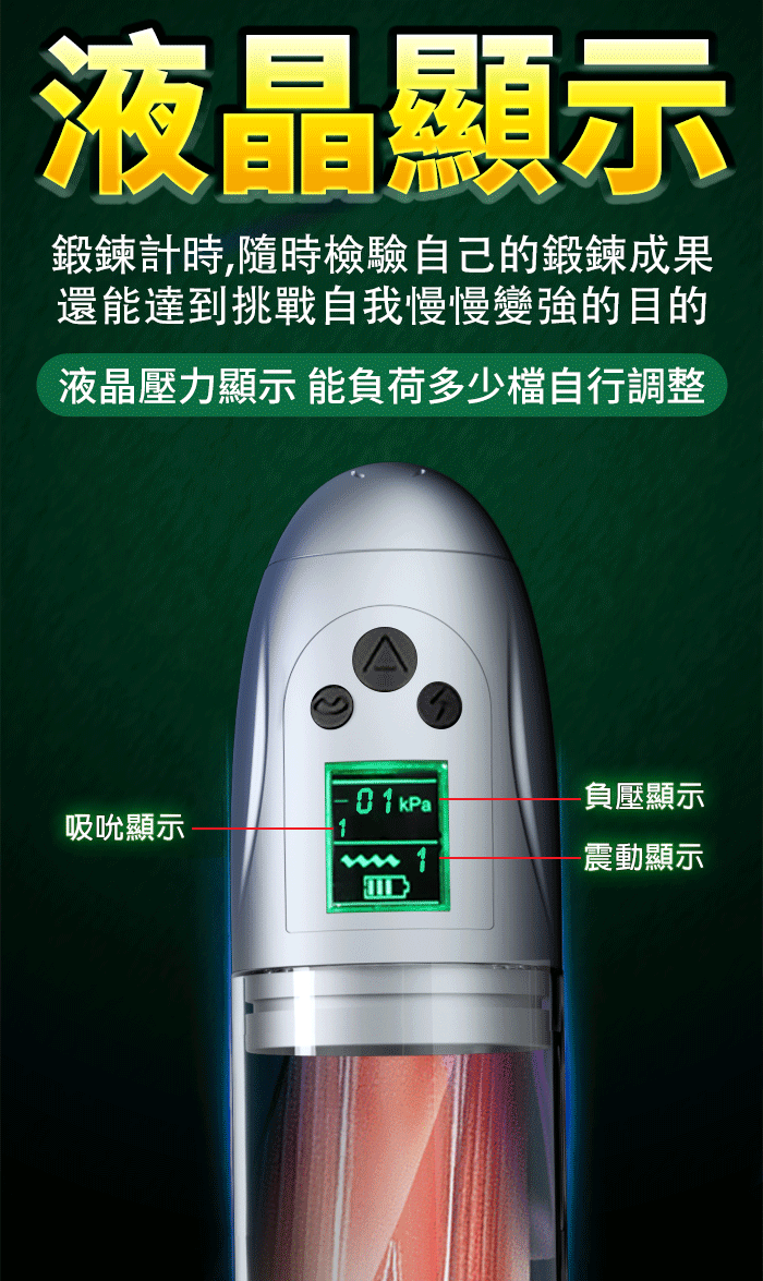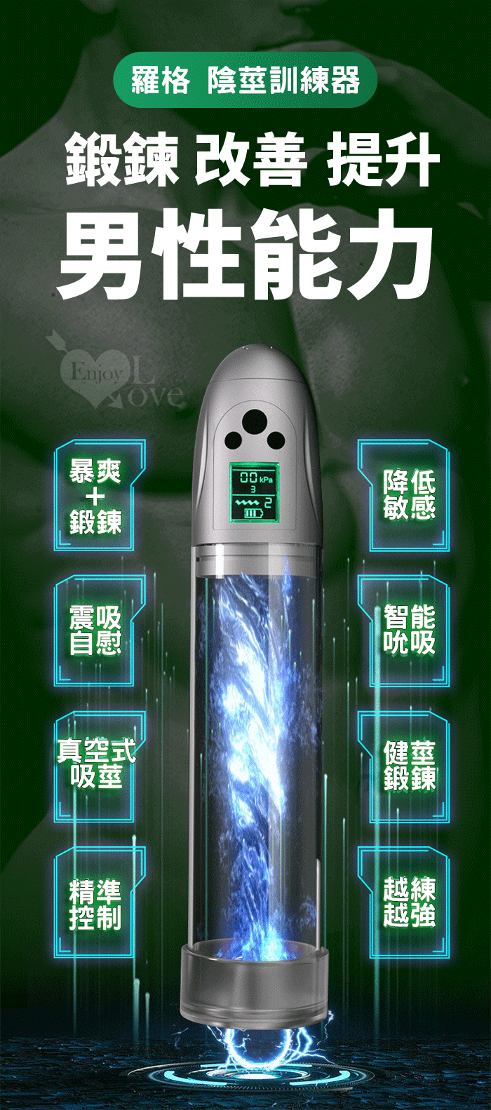 YEAIN夜樱 ‧ 羅格 AI智能9頻震5段真空負壓吸吮 液晶壓力顯示健莖鍛鍊自慰器 Luoge