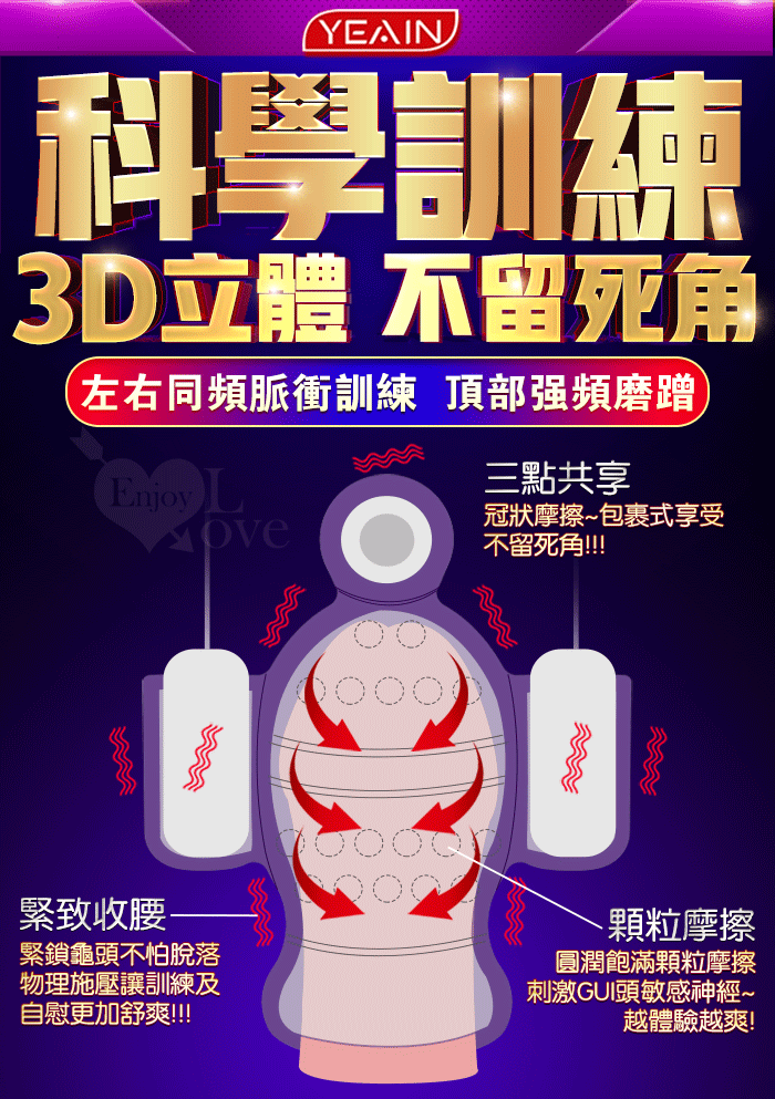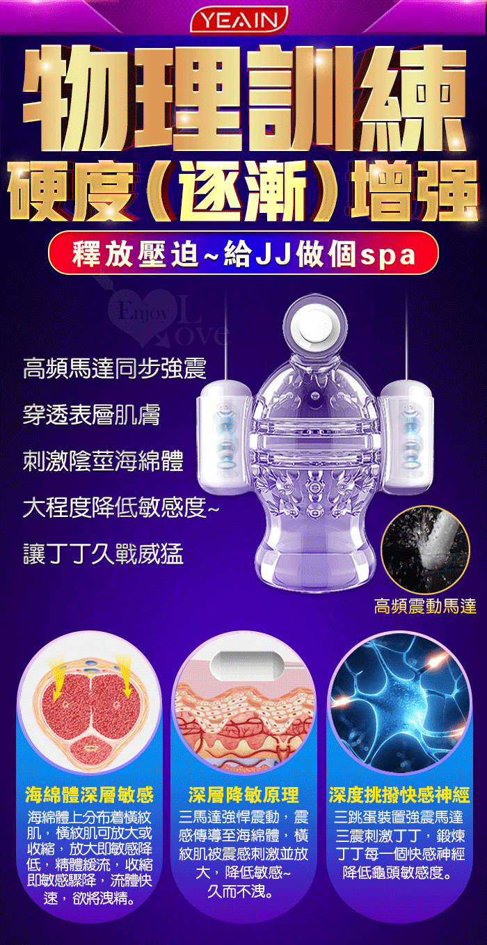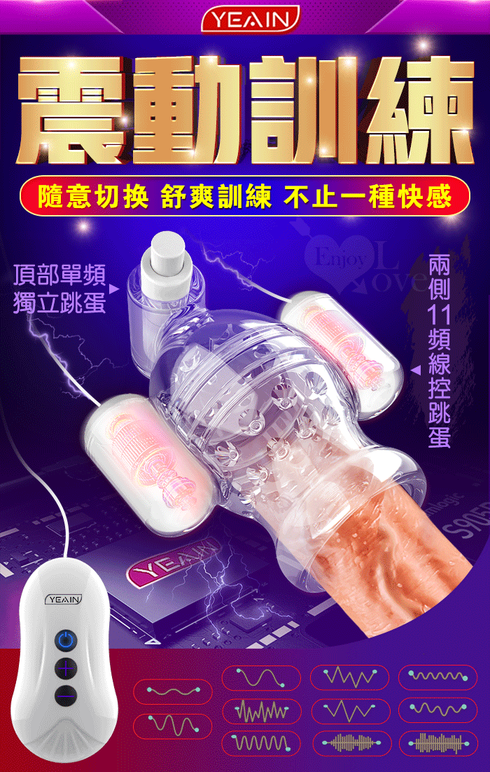 YEAIN夜樱 ‧ 海陸空男性自慰龜頭訓練器 三點共震/11頻雙側震蛋/頂部激震蛋/顆粒環紋包覆