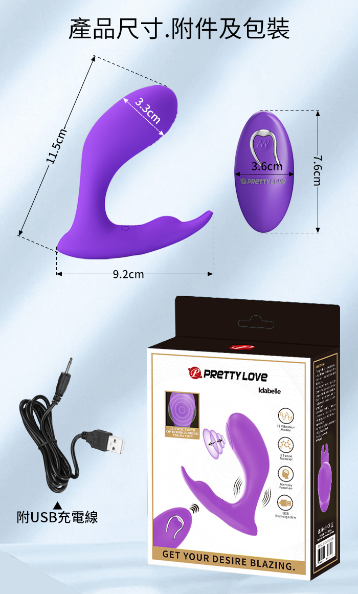 派蒂菈 ‧ Idabelle 伊達貝利 無線遙控 雙點鼓動震動前列腺按摩器﹝12頻鼓動+強震/男女可通用/USB充電﹞紫羅蘭