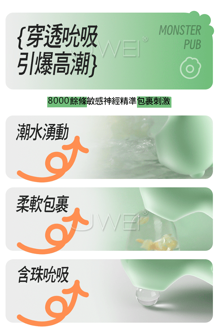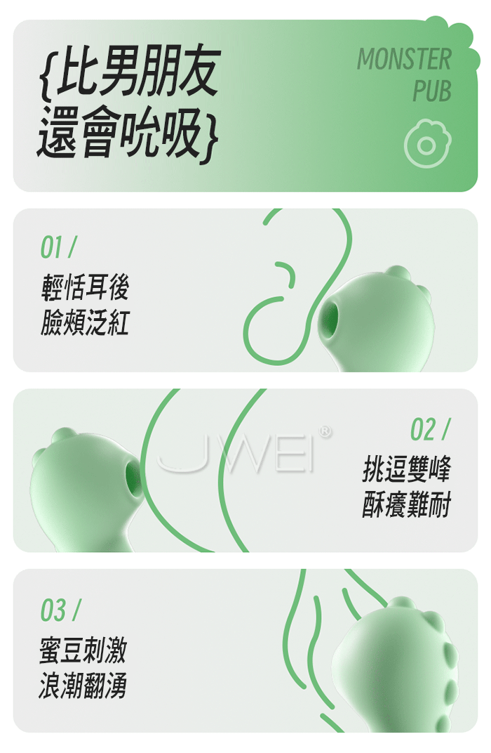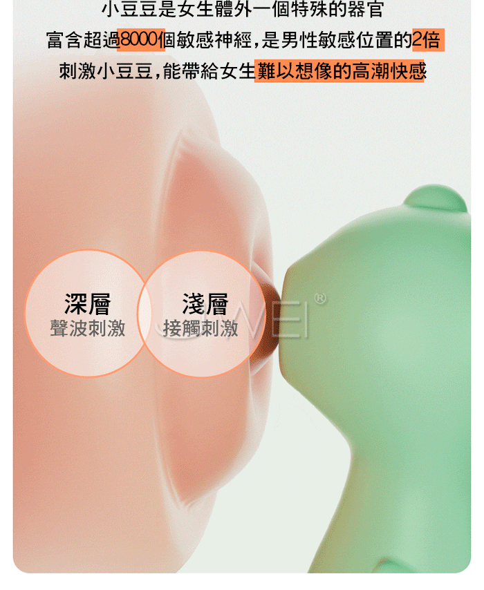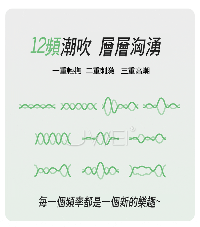 萌吻吮吸,美妙?體驗,喚醒在豆豆深處多個神經 7500次/分鐘強力馬達,穿透級秒潮,激活每寸肌膚 12頻潮吹,層層洶湧,一重輕撫/二重刺激/三重高潮 每一個頻率都是一個新的樂趣~ ■尺寸:大小詳如圖片標示 ■材質:矽膠+ABS ■特色:12頻震動