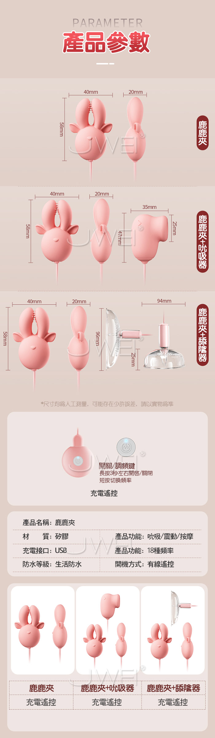 鹿鹿夾.酥撩雙峰 18頻震動乳夾+吸吮挑逗器(充電款+吸吮器)