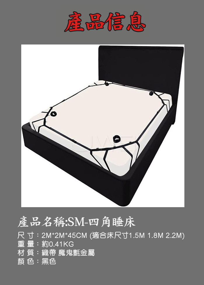 ►您現在的位置:首頁>SM.多功能床上捆綁固定捆綁束縛用具-四角睡床