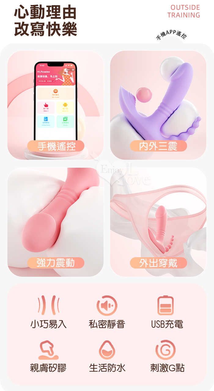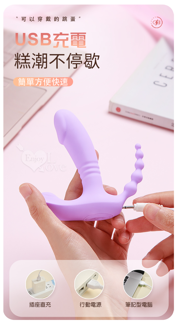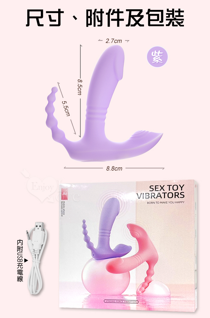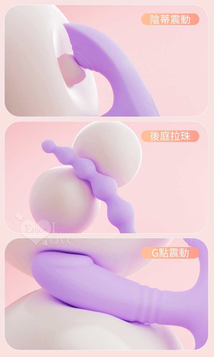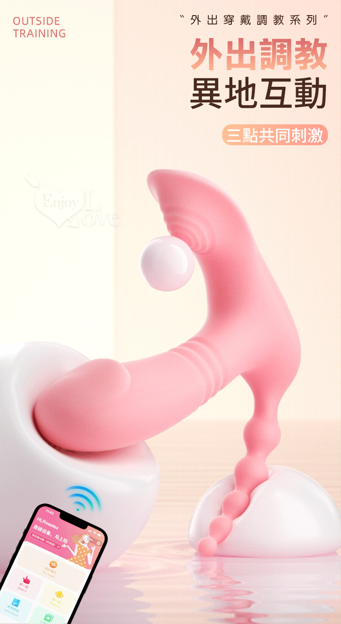 ROSELEX 勞樂斯 ‧ 悅逗 10頻雙馬達震動三點拉珠刺激穿戴按摩器 - 可手機APP遙控﹝具兩種操控模式﹞紫