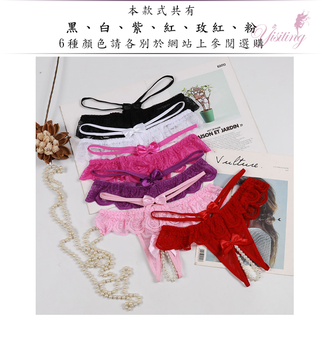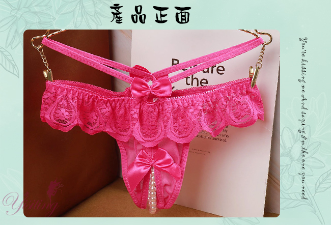 浪漫情人!輕膚柔紗拼接蕾絲迷人珍珠開襠丁字褲﹝玫紅﹞