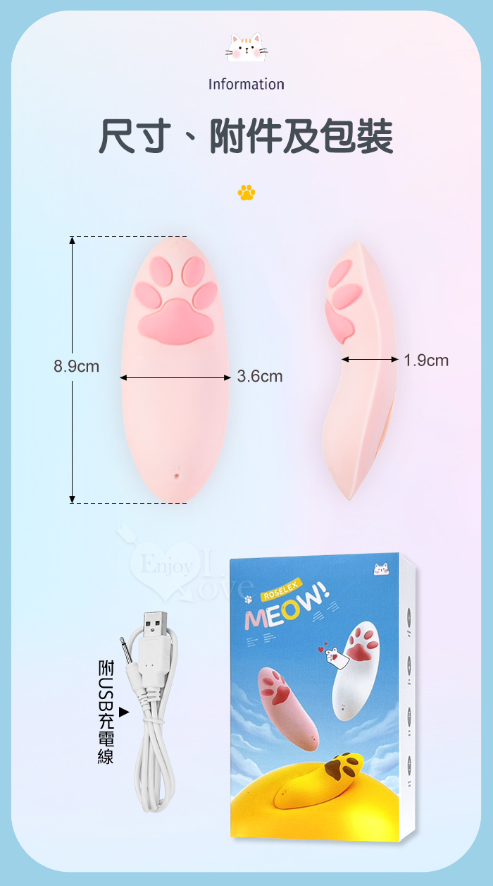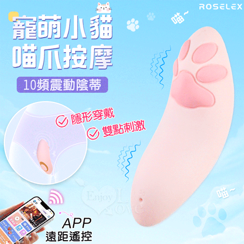 ROSELEX勞樂斯.寵萌小貓喵爪按摩器-10頻震動陰蒂刺激調情自慰跳蛋﹝可兩種操控模式/隱形貼合/滑順矽膠﹞