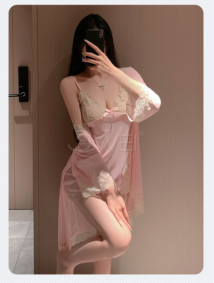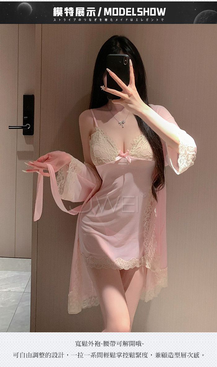 ■內容物:吊帶裙+T褲+外袍+腰帶 ■適穿尺寸:FREESIZE ■彈性:彈 ■未撐開平量尺寸正負誤差1~2cm,1吋=2.54cm ■注意事項:基於保障消費者個人衛生,此貼身衣物恕不接受退換貨。 (如為商品本身暇疵,接受七日內換貨,請勿試穿,謝謝您)