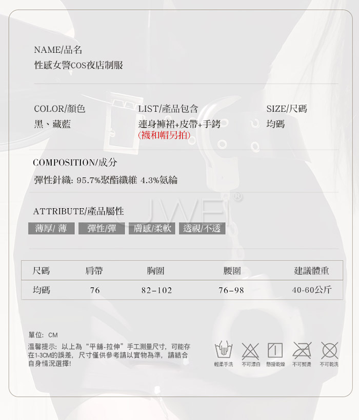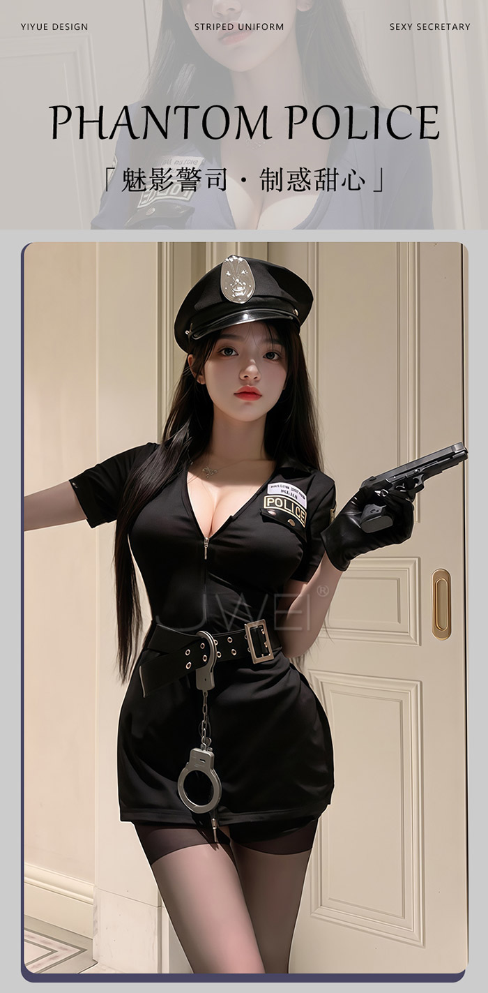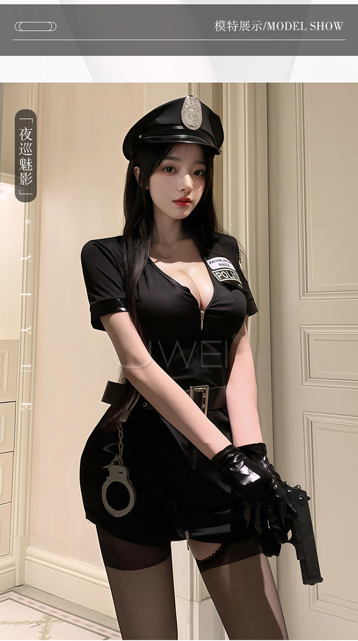 ►您現在的位置:首頁>魅影警司.制惑拉鍊調節開胸性感貼身包臀女警套裝-黑色【連身褲裙+皮帶+手銬】