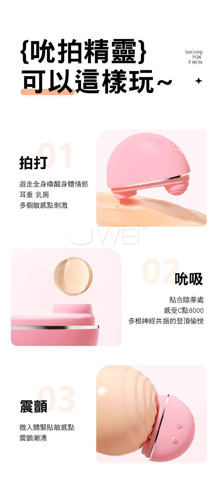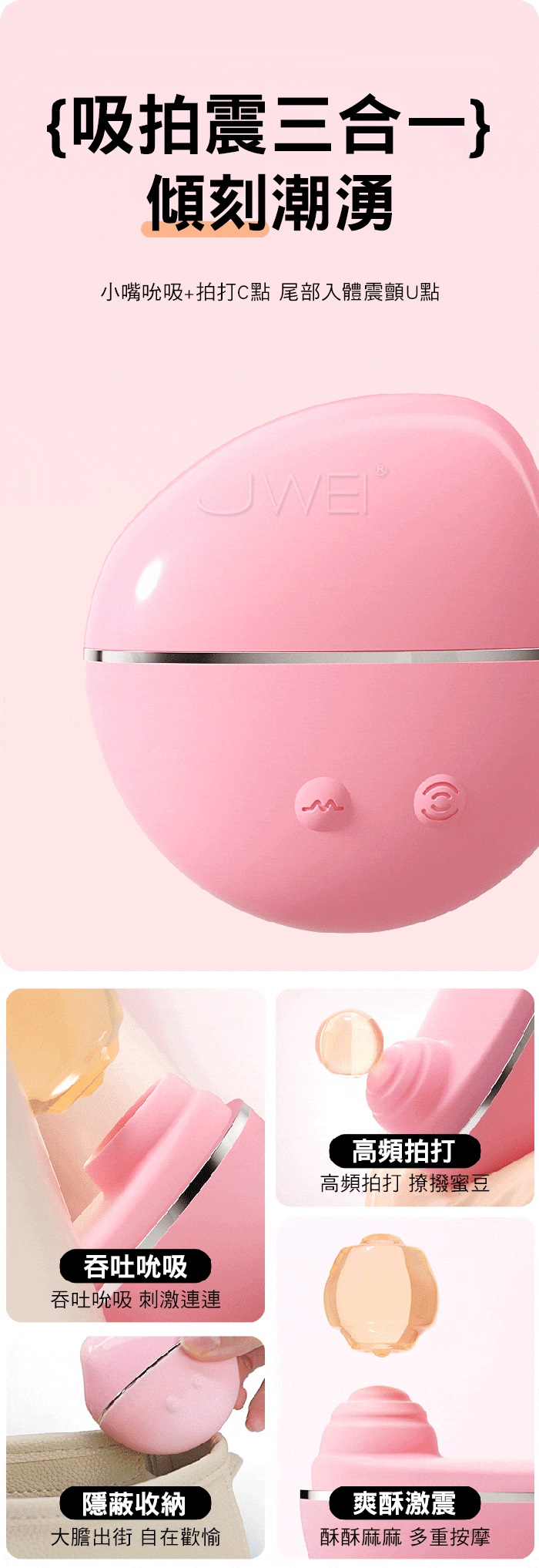 吸拍震三合一,傾刻潮湧,小嘴吮吸+拍打C點 尾部入體震顫U點